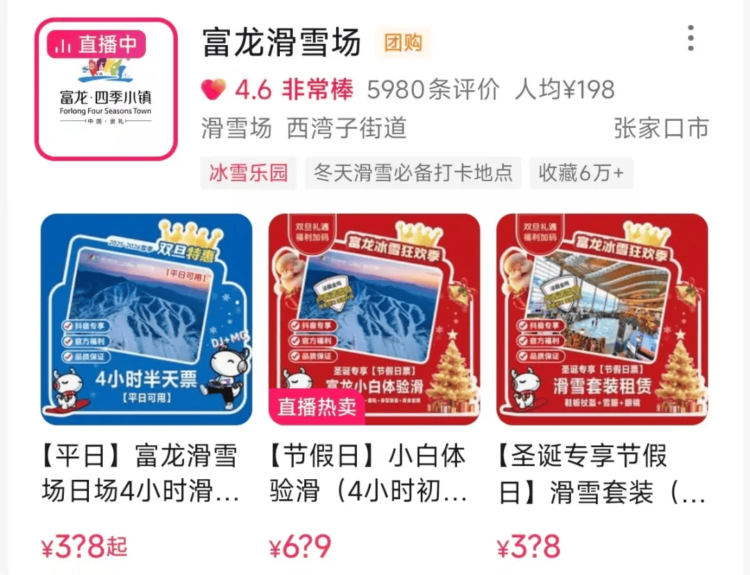 数据也证明这招确实好使:富龙滑雪场官方直播间能贡献其日均GMV的55%左右,高的时候能到70%,仅在“抖音生活冰雪季”活动期间,其冰雪产品销售就突破了八千万。